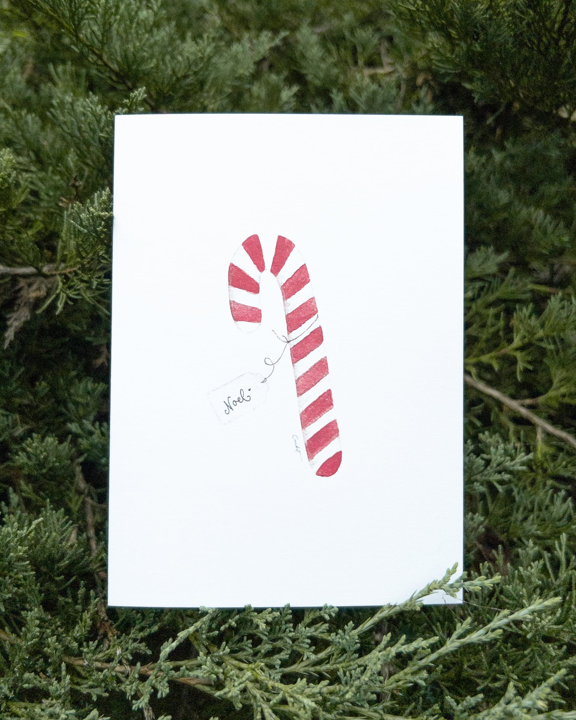 This printed card design is adapted from an original painting done in watercolor and ink. Choose between hand-applied glitter or no glitter.