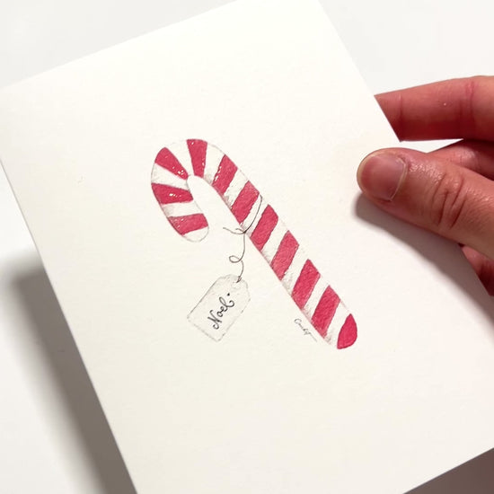 Candy Cane Watercolor Greeting Card